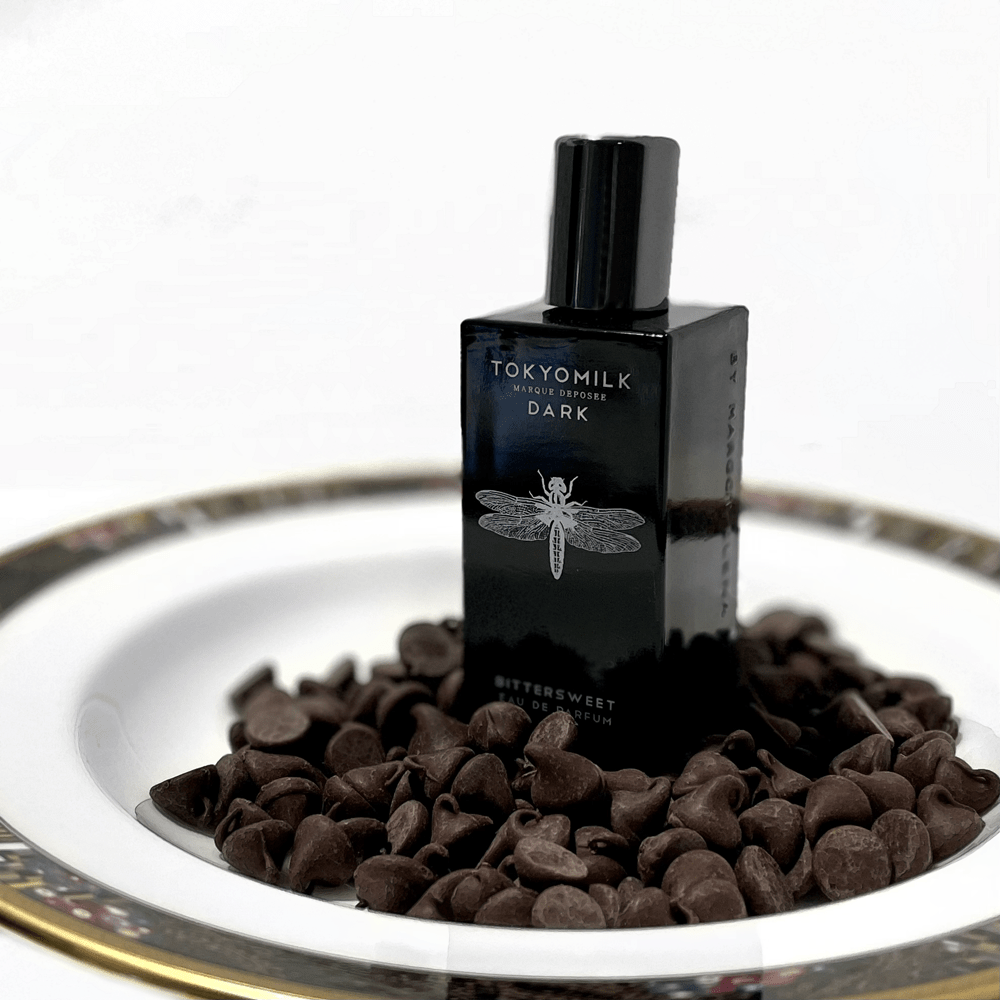 (TokyoMilk No. 83 lists Cake Flour, Dark Cacao Bean, Osmanthus and Bronzed Musk.)