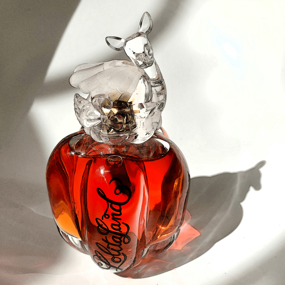 Sunlight and shadows through a frosted and white version of the Lolita Lempicka apple, with pink juice–one of LL’s prettiest bottles.